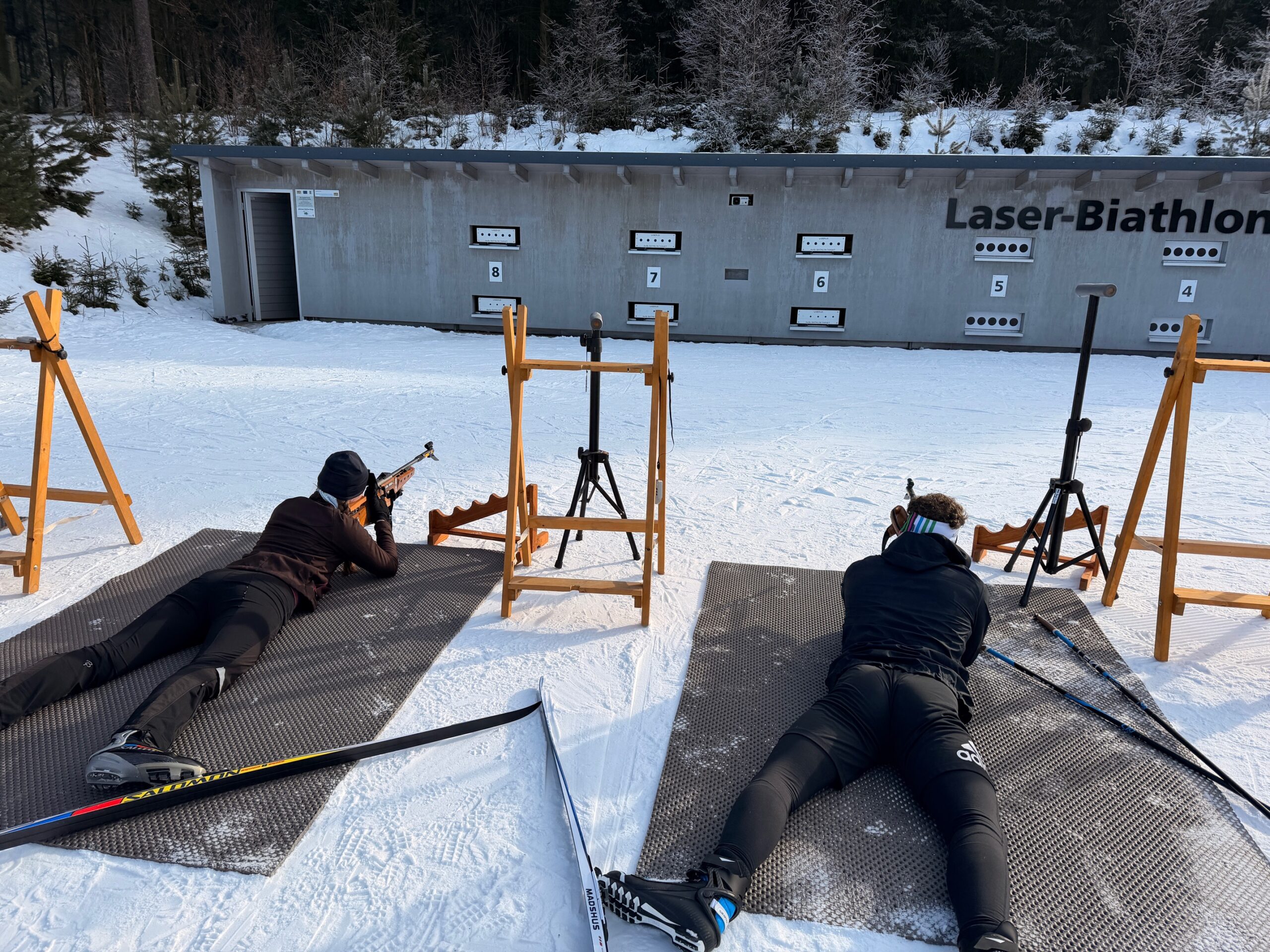 Anschließend trainierten die Teilnehmenden in zwei Gruppen. Die Anfänger übten im Stadionbereich die Grundlagen, während die Fortgeschrittenen auf der 2-Kilometer-Skatingrunde an ihrer Technik feilten. Höhepunkt des Tages war das Biathlontraining an der Laseranlage, bei dem sowohl stehend als auch liegend geschossen wurde. Die speziell umgerüsteten Gewehre entsprechen in Handhabung und Gewicht echten Wettkampfgewehren. Geschossen wird jedoch mit einem ungefährlichen Laser auf verkleinerte Zielscheiben im Abstand von 10 Metern.
